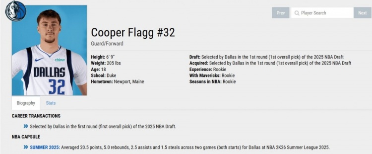 8月19日最新消息,独行侠随队记者Mike Curtis公布了状元弗拉格的官方注册信息,其位置标注为后卫/前锋。